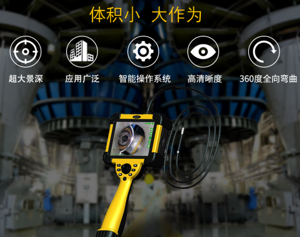 在大型機(jī)械檢修中,主要用于大型機(jī)械設(shè)備的內(nèi)部檢查,以及一些由于溫度過高、有毒或者過于狹小的環(huán)境下的機(jī)器工作情況觀察,以有效避免直接觀測(cè)對(duì)觀測(cè)者造成的不良影響,而且在通過內(nèi)窺鏡本身結(jié)構(gòu)的優(yōu)化和調(diào)整,可對(duì)觀測(cè)角度和觀測(cè)范圍作出十分全面的調(diào)整,操作簡(jiǎn)單。